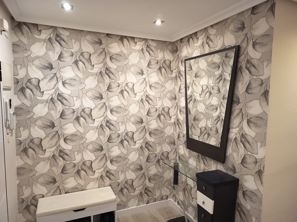 A continuación, podemos ver fotos de nuestro último trabajo realizado de puesta de papel pintado.